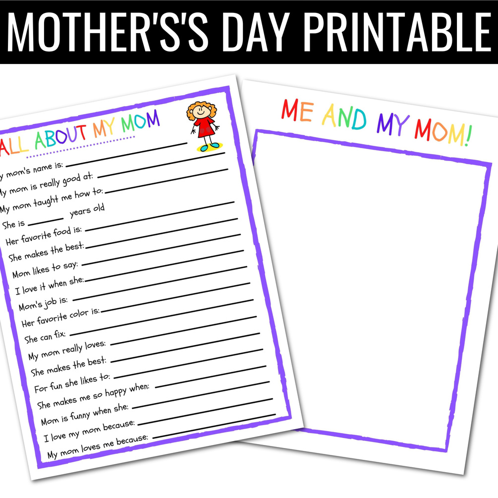 -8.5”x 11” printable PDF All About My Mom Fill in the Blank Questionnaire