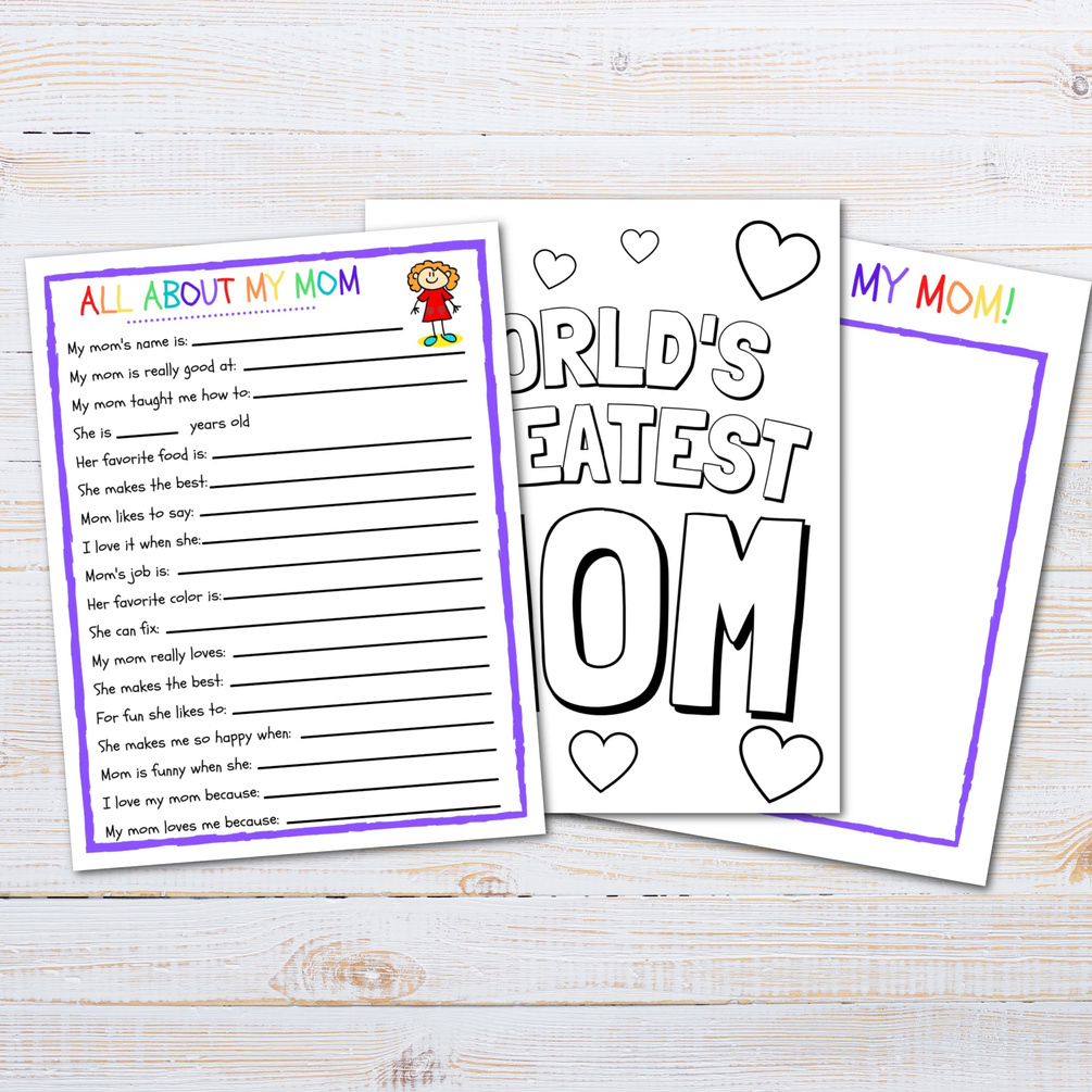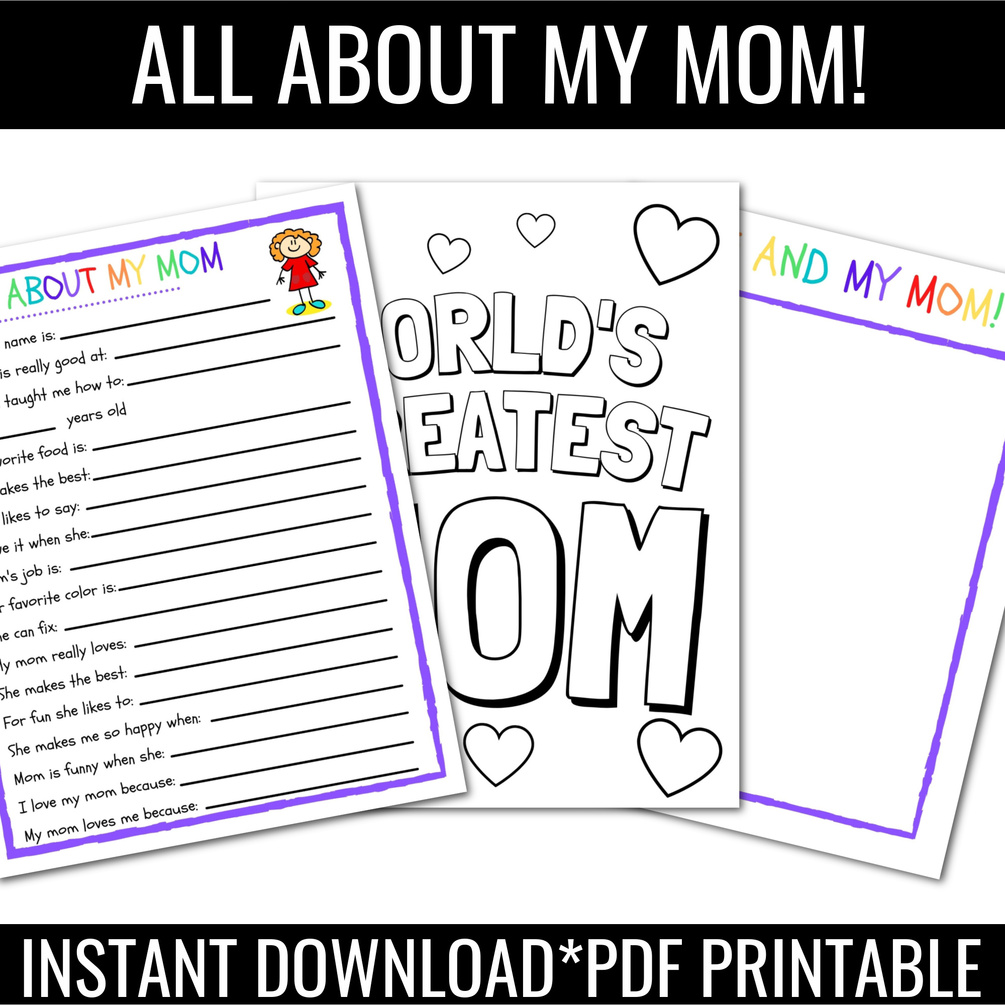 Need a cute Mother’s Day or Mom's birthday card/gift from your child? This instant download All About My Mom is the perfect gift for mom from kids. All you need to do is have your kids answer the questions, fill out the answers and then you've got a timeless keepsake for mom to look back and enjoy when the kids have grown up. What better gift than something personalized, cute and funny?