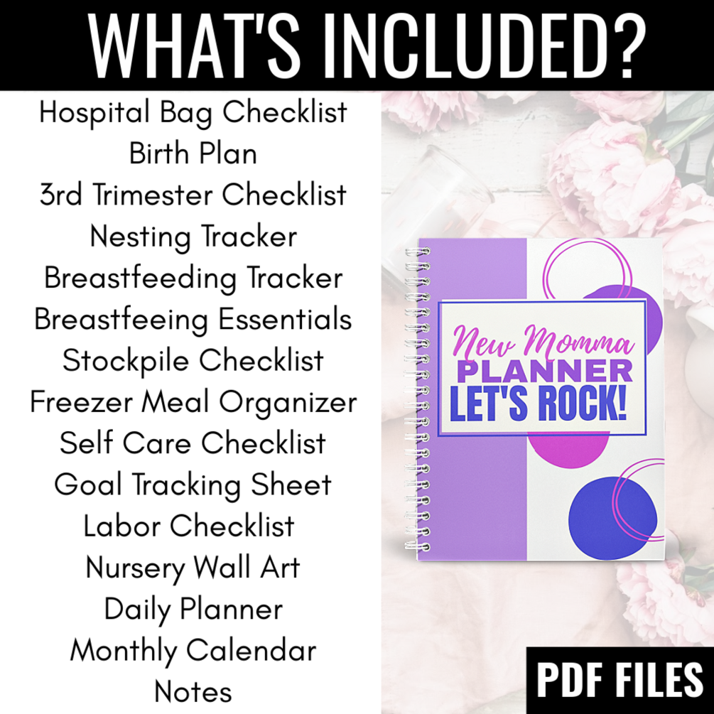 With easy-to-fill-in printables, the New Momma Planner enables you to manage your to-do lists, keep track of feedings, plan out meals, plan your week, and so much more!