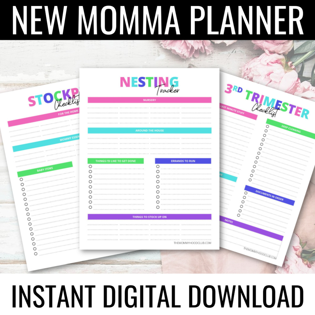 The New Momma Planner Printable (digital download PDF format) is a simple solution that helps new moms get organized from the last stretch of pregnancy right till baby is home and in your arms.