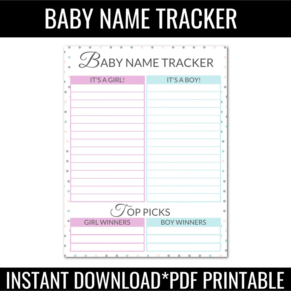Having trouble keeping track of baby names? Or is it hard to narrow it down because your partner is picky? Make it easy for yourself- grab this cute and practical baby name tracker with spaces for the top 3 contenders. Laminate it and use a dry erase marker if the top 3 keep changing!