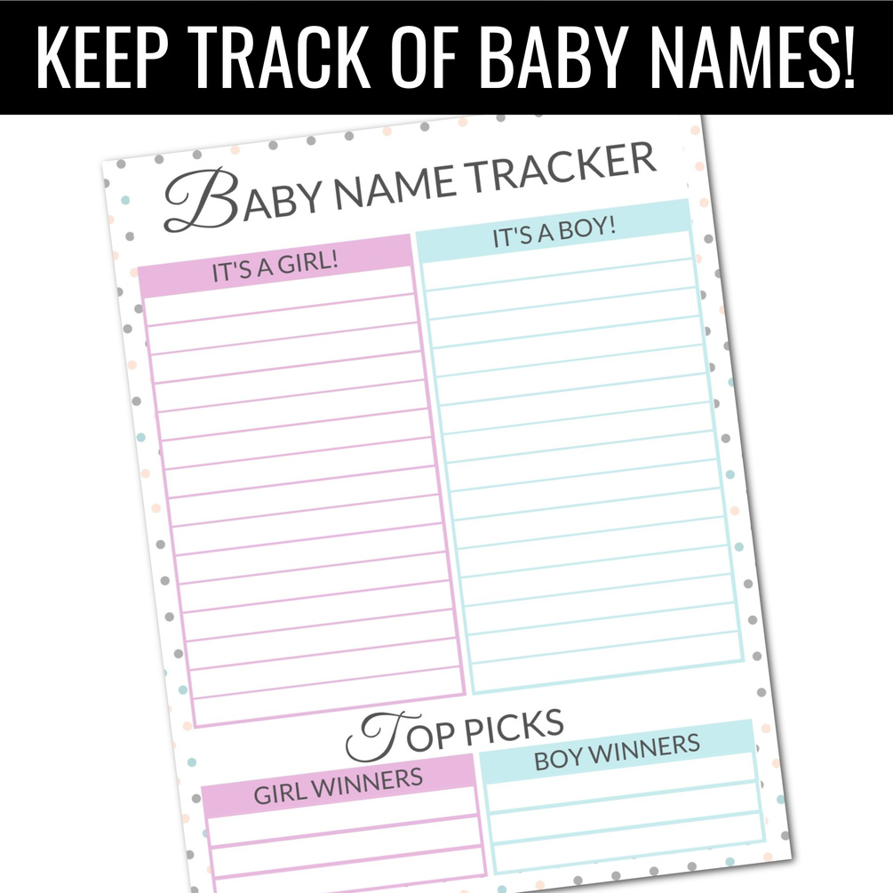 Having trouble keeping track of baby names? Or is it hard to narrow it down because your partner is picky? Make it easy for yourself- grab this cute and practical baby name tracker with spaces for the top 3 contenders. Laminate it and use a dry erase marker if the top 3 keep changing!