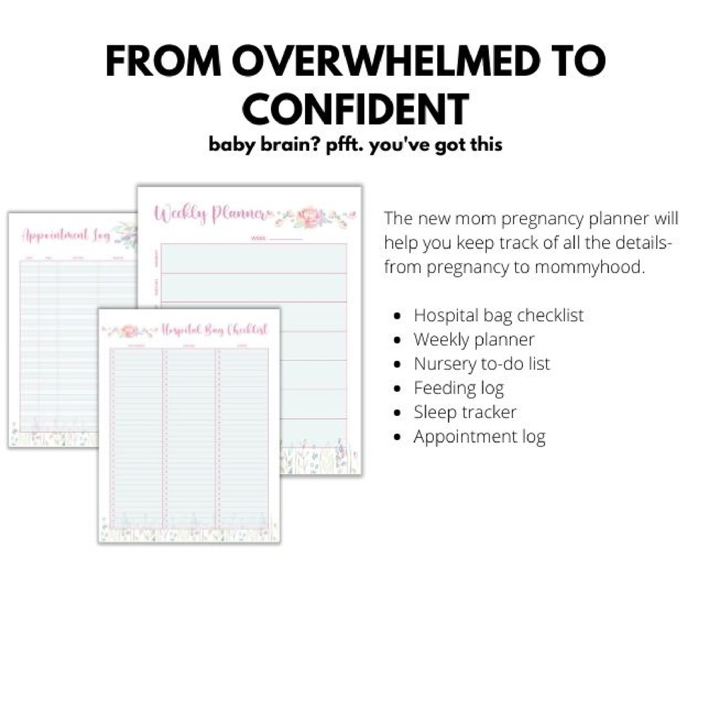 This helpful pregnancy planner was created for new moms (specifically YOU) in mind! Plan a healthy pregnancy, keep track of appointments, nursery to-do's, what to pack in your hospital bag and your weekly schedule. Go from pregnancy to postpartum easily and confidently, even as a brand new mom.